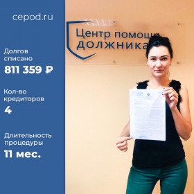 Списано долгов на 800 000 р. за 11 месяцев. Кол-во кредиторов - 4 шт.
